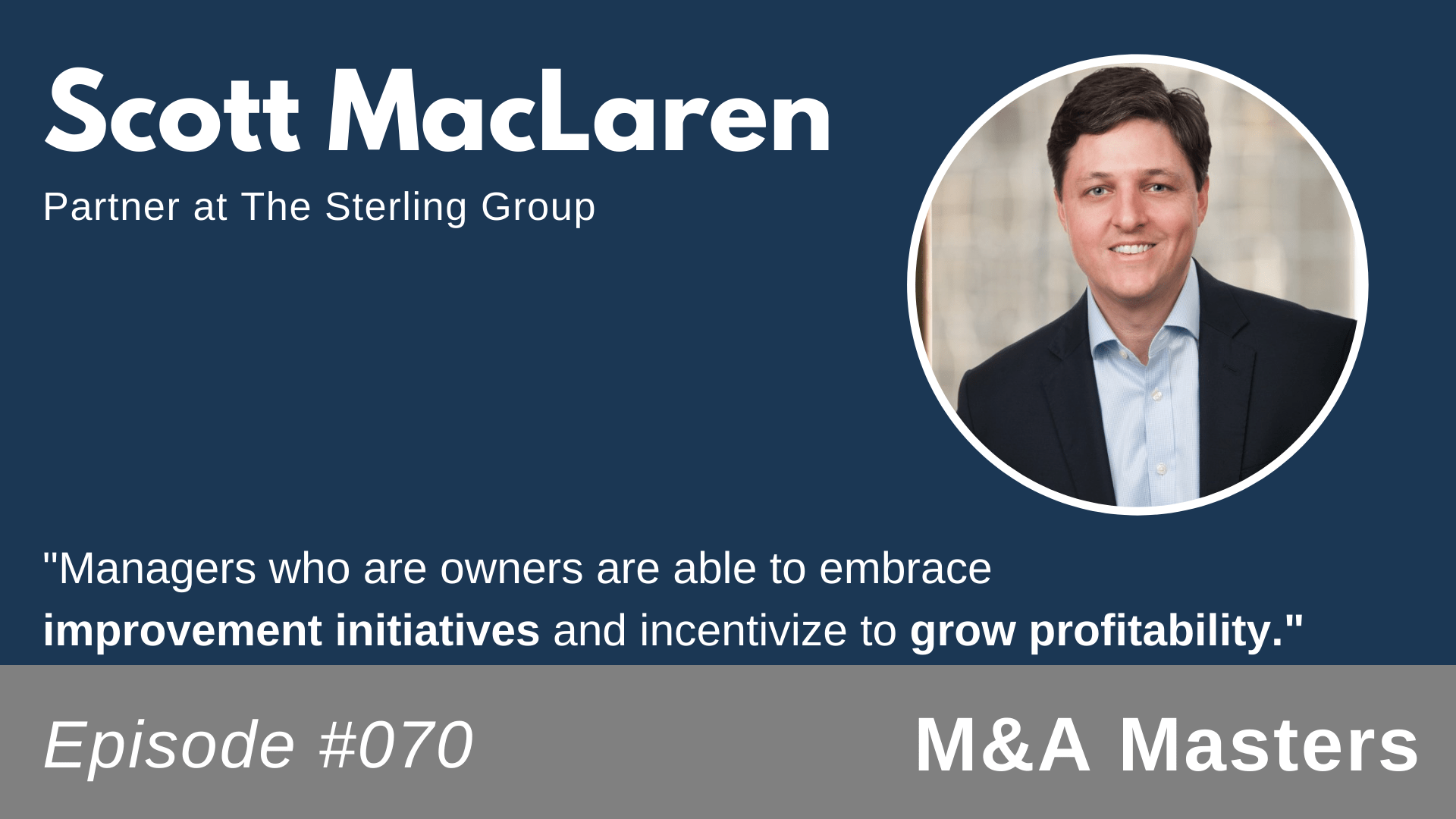 Our guest for this week’s episode of M&A Masters is Scott MacLaren, Partner of The Sterling Group in Houston. The Sterling Group is a private equity firm, one of the oldest in the country, and currently has $4 billion of assets under management. Scott did not start off in private