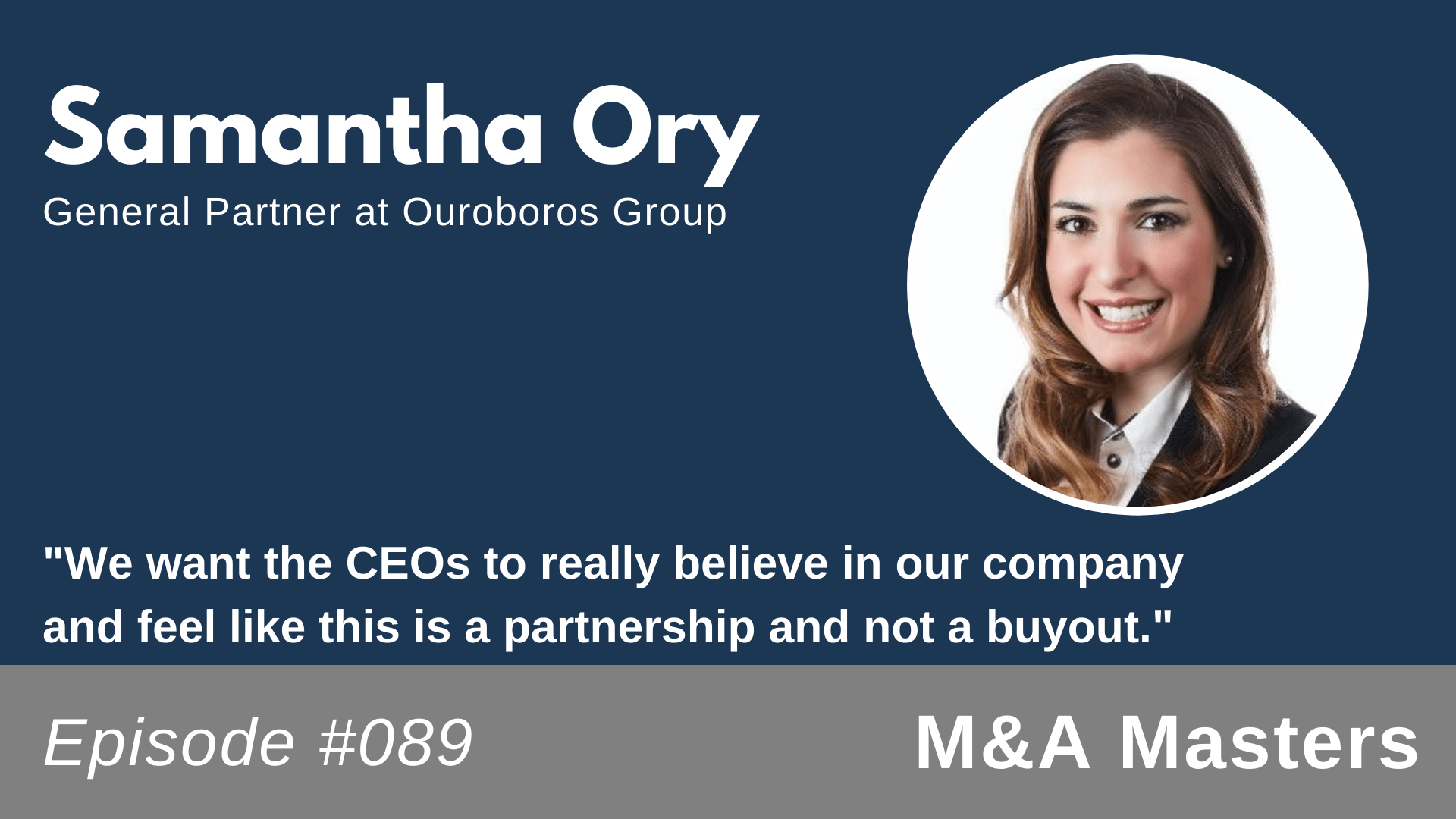 On this week’s episode of M&A Masters, we sit down with Samantha Ory to talk about choosing partnership over buyout. Samantha’s company, Ouroboros Group, is a private investment firm specializing in middle market corporate acquisitions and operations in the manufacturing, healthcare, and consumer sectors. Samantha says, “I found that there