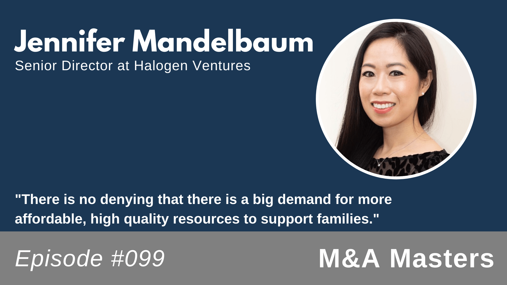 On this week’s episode of M&A Masters, we speak with Jennifer Mandelbaum, Senior Investment Director at Halogen Ventures. Halogen Ventures is a California-based Venture Capital fund focused on investing in early stage consumer technology startups with a female on the founding team.